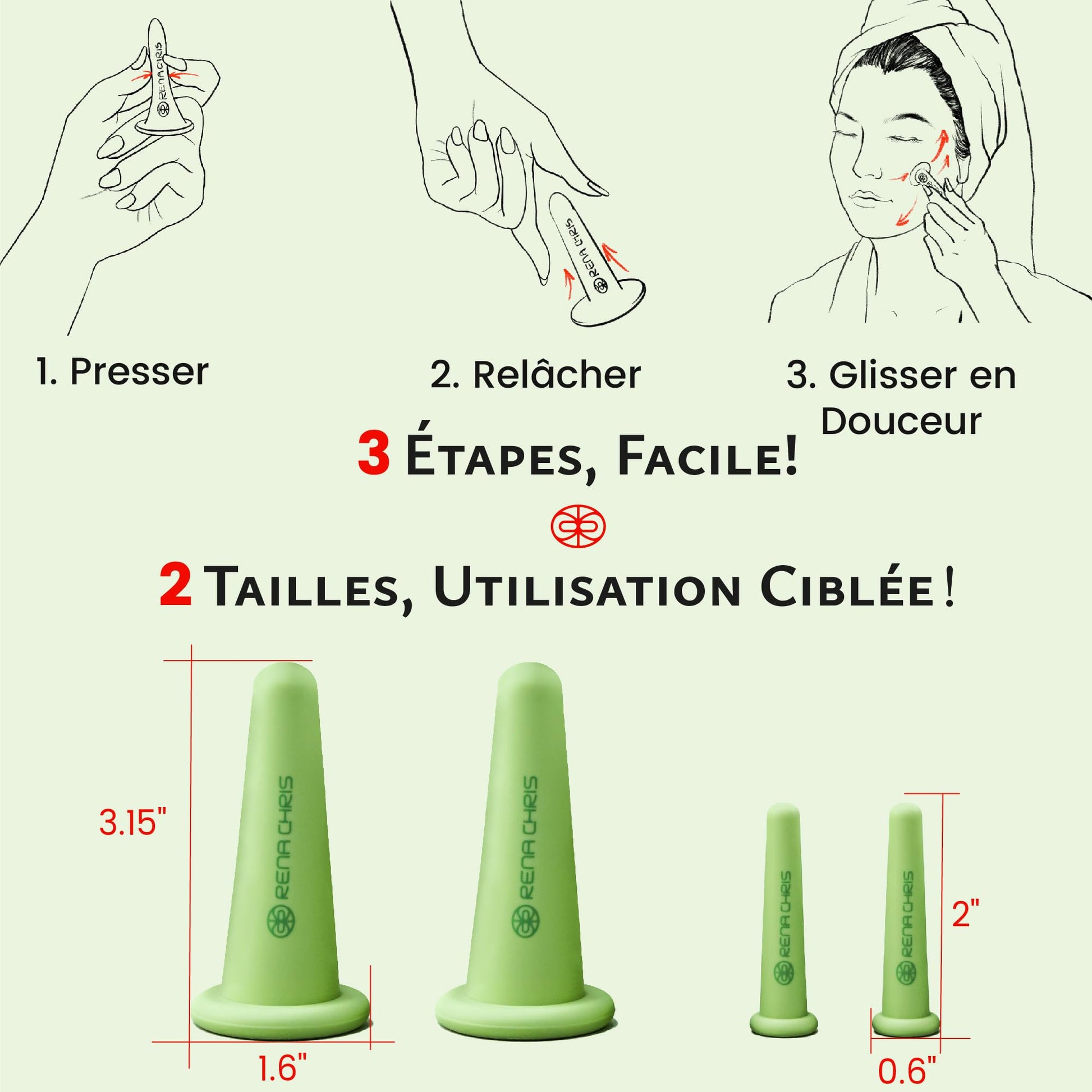 - RÉGÉNÉRATION DU VISAGE : Notre ensemble de cupping comprend deux tailles pour le visage et le cou. Fabriqué en silicone de haute qualité, il réduit les gonflements et sculpte le visage. Un guide d'utilisation convivial est inclus